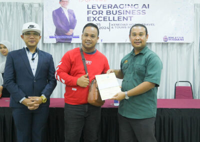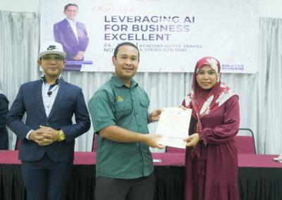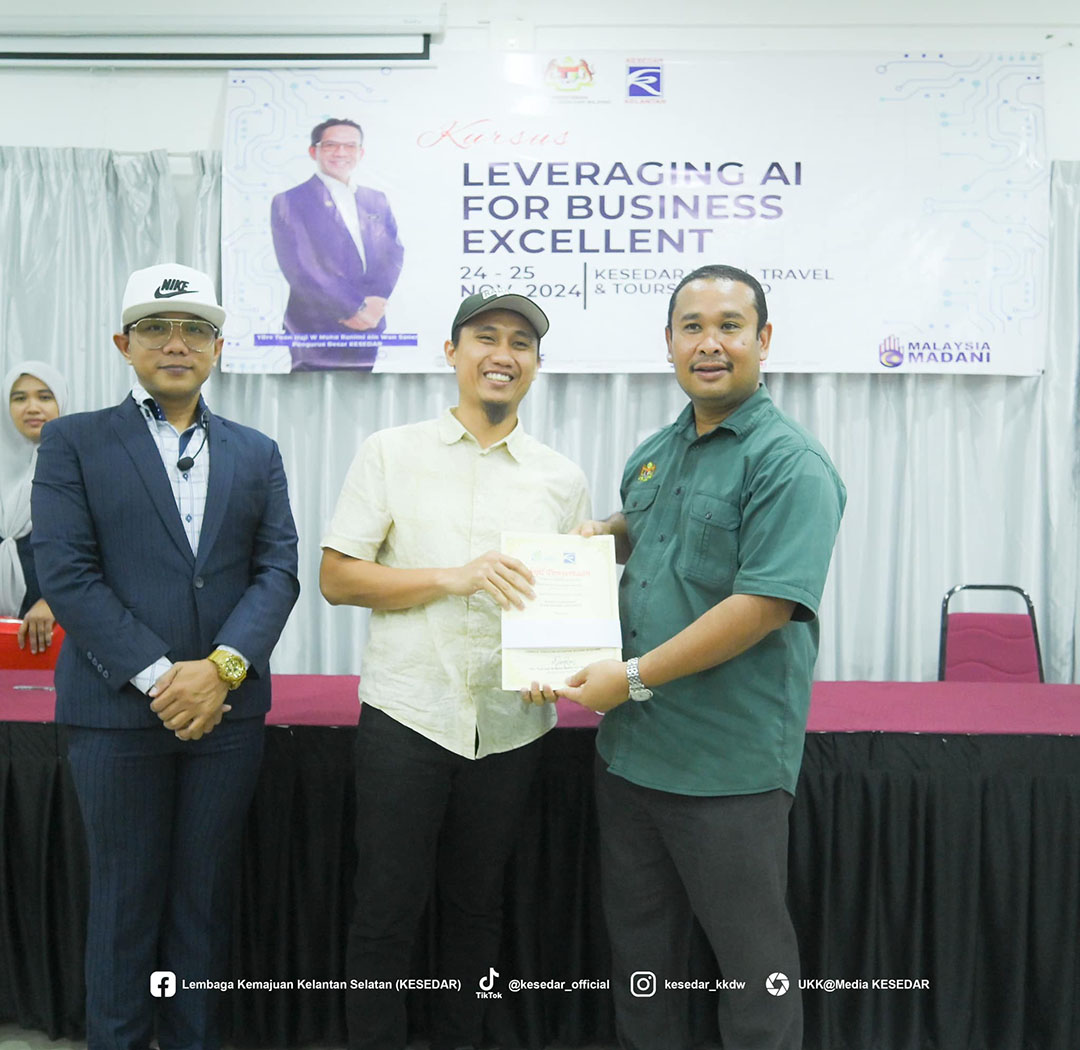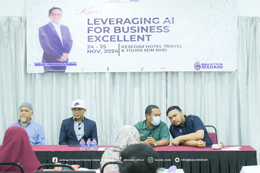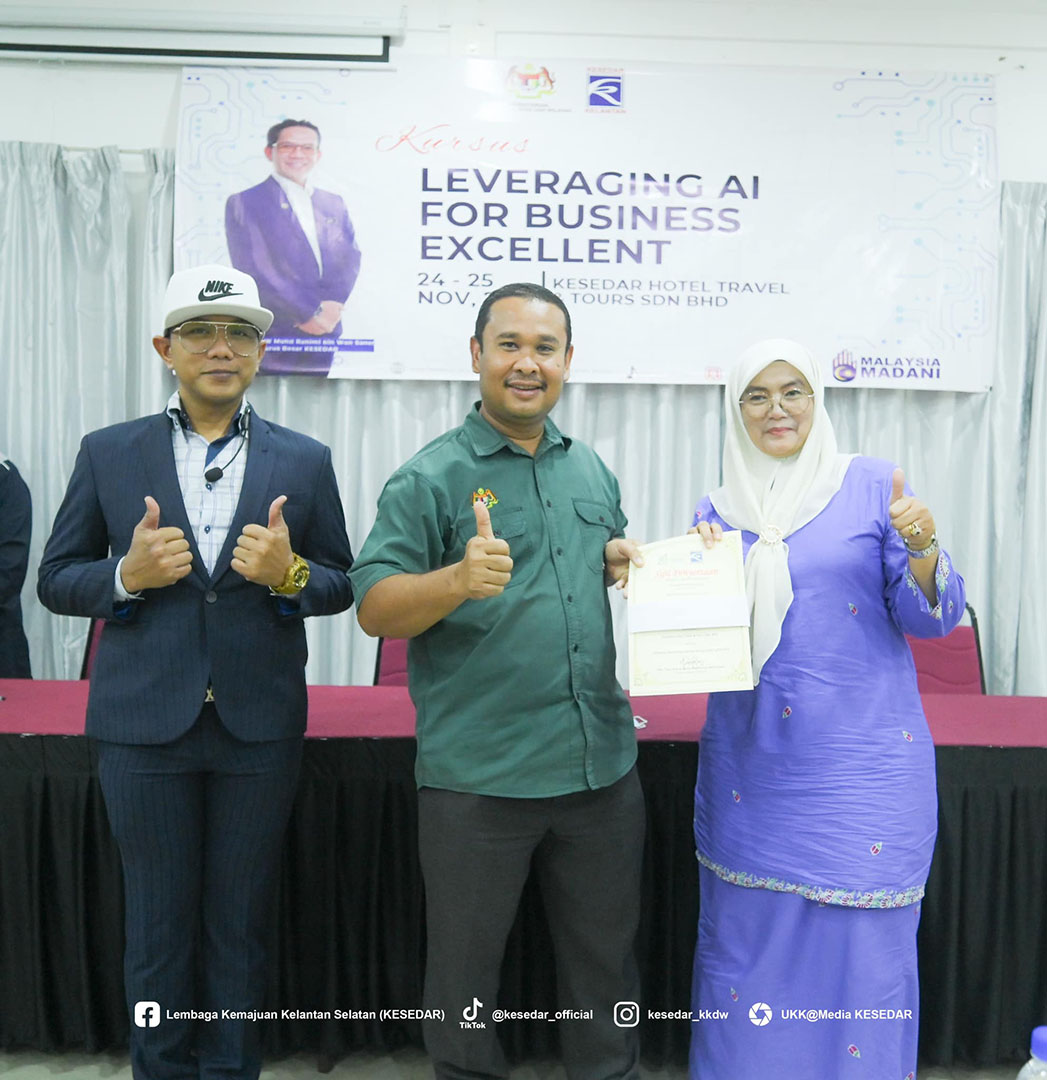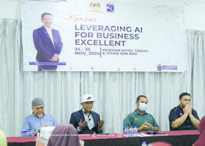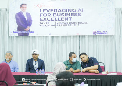Seramai 35 peserta dari empat wilayah KESEDAR telah menyertai Program “Leveraging AI For Business Excellent yang diadakan di KESEDAR Hotel Travel & Tours Sdn Bhd.