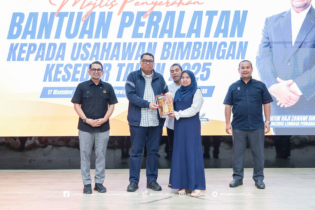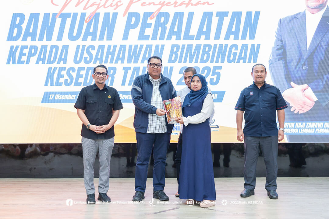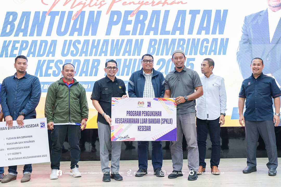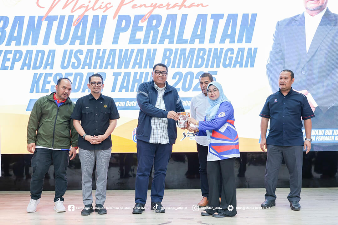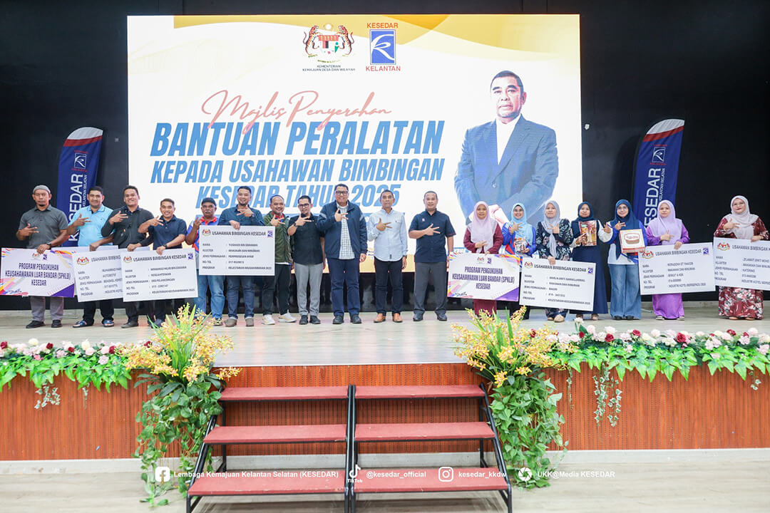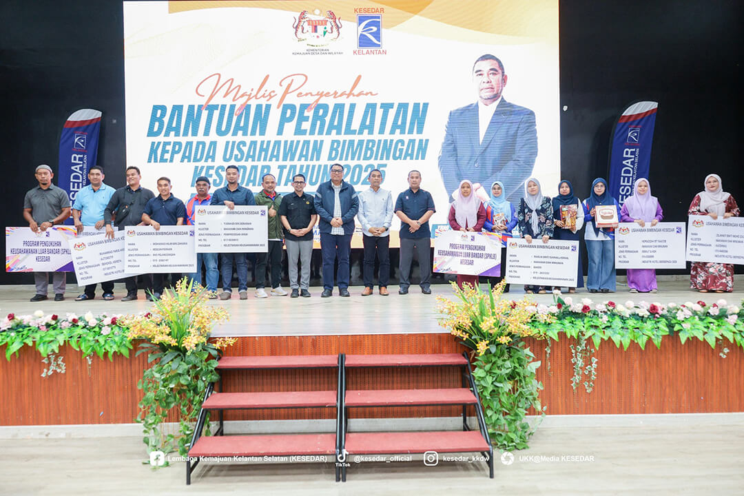 Kementerian Kemajuan Desa dan Wilayah (KKDW) melalui Lembaga Kemajuan Kelantan Selatan (KESEDAR) telah menganjurkan Majlis Penyerahan Bantuan Peralatan kepada Usahawan Bimbingan KESEDAR Tahun 2025 sebagai usaha berterusan memperkasa sektor keusahawanan dan meningkatkan pendapatan usahawan luar bandar.
