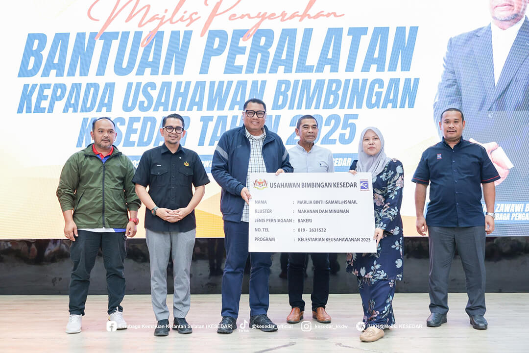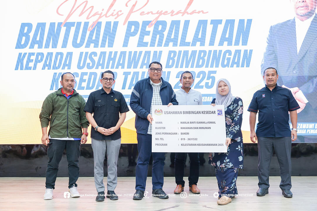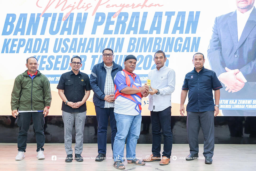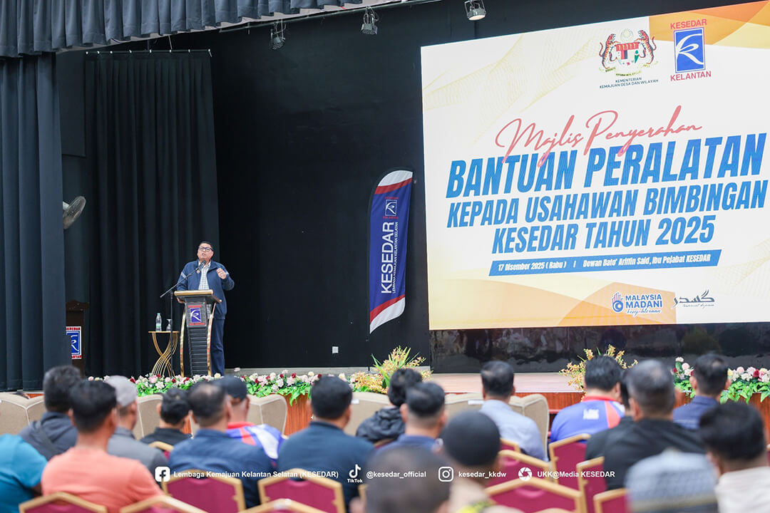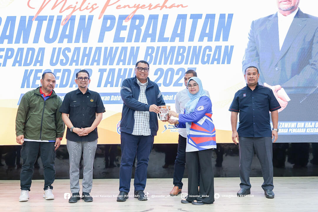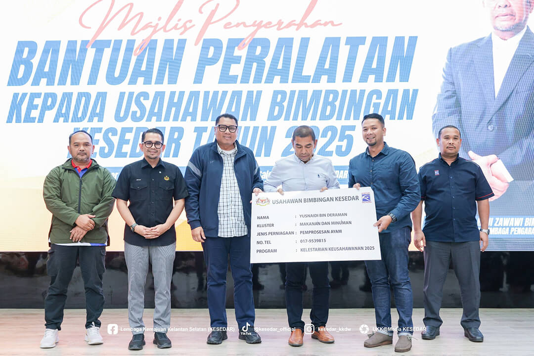 Kementerian Kemajuan Desa dan Wilayah (KKDW) melalui Lembaga Kemajuan Kelantan Selatan (KESEDAR) telah menganjurkan Majlis Penyerahan Bantuan Peralatan kepada Usahawan Bimbingan KESEDAR Tahun 2025 sebagai usaha berterusan memperkasa sektor keusahawanan dan meningkatkan pendapatan usahawan luar bandar.