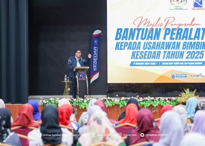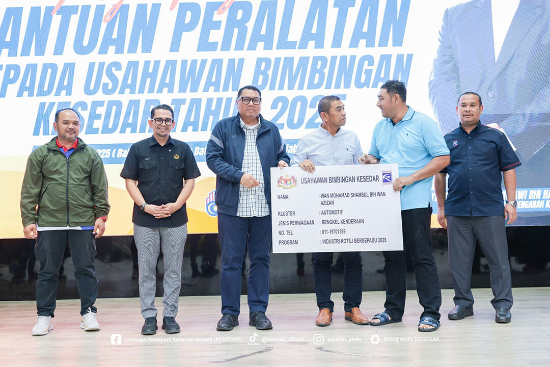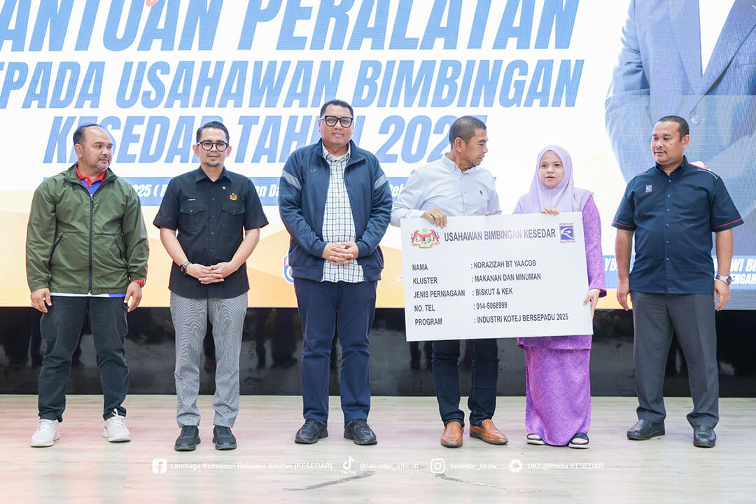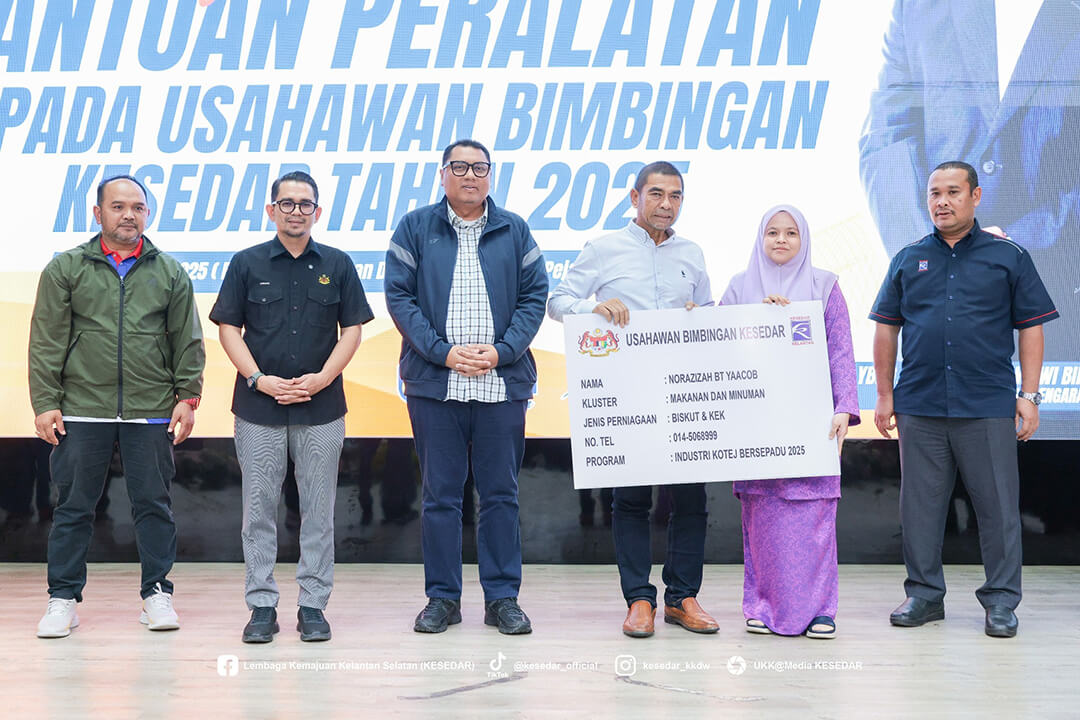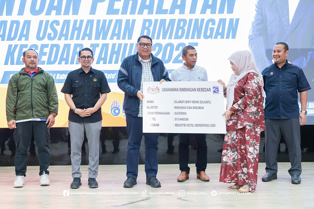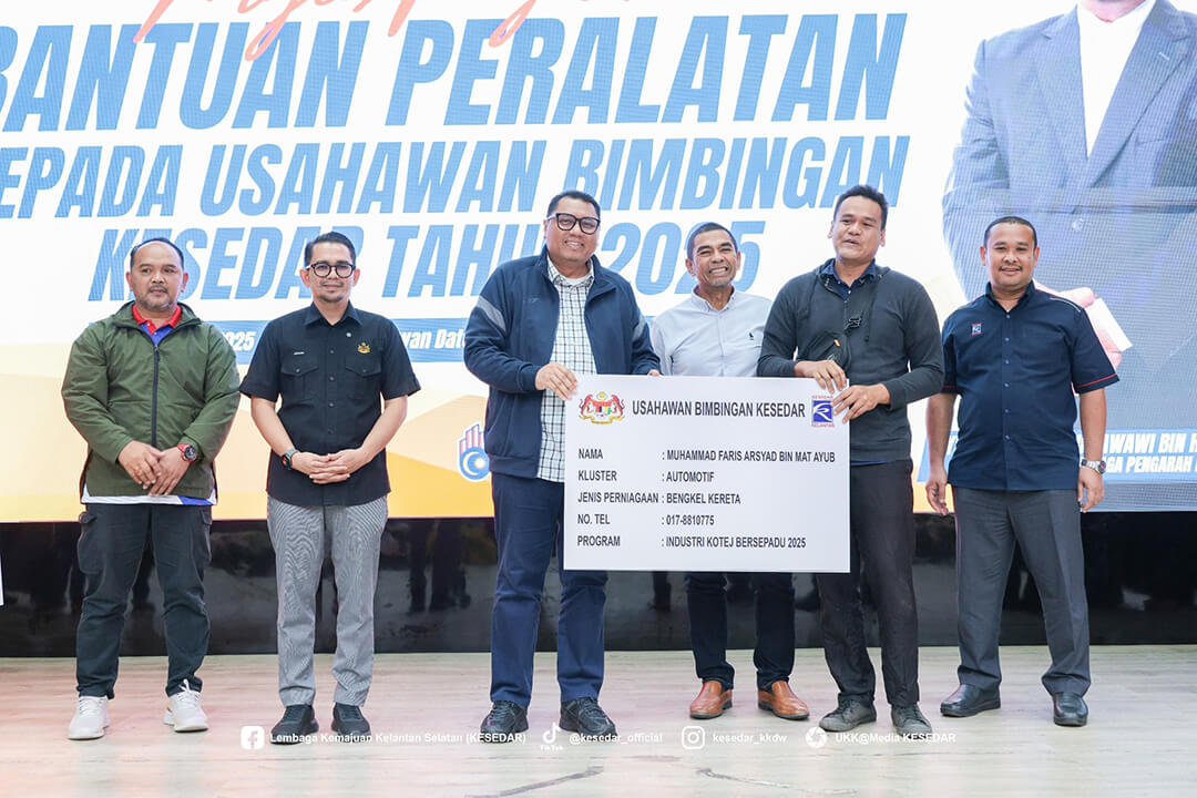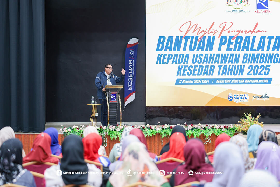 Kementerian Kemajuan Desa dan Wilayah (KKDW) melalui Lembaga Kemajuan Kelantan Selatan (KESEDAR) telah menganjurkan Majlis Penyerahan Bantuan Peralatan kepada Usahawan Bimbingan KESEDAR Tahun 2025 sebagai usaha berterusan memperkasa sektor keusahawanan dan meningkatkan pendapatan usahawan luar bandar.