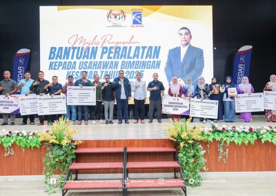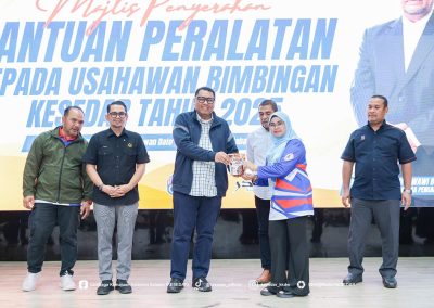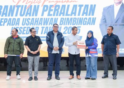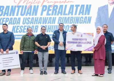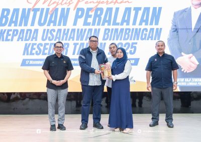 Sementara itu, Program Kelestarian Keusahawanan telah memberi manfaat kepada 24 orang usahawan, merangkumi 6 orang penerima Bantuan Peralatan (In-Kind) berjumlah RM115,050.00 serta 18 orang penerima Bantuan Pelabelan dan Penjenamaan dengan peruntukan sebanyak RM181,980.00. Bantuan ini bertujuan memperkukuh daya saing produk tempatan agar lebih menepati keperluan pasaran semasa.