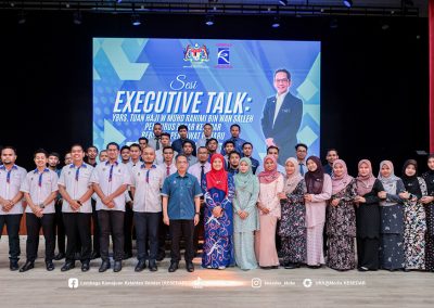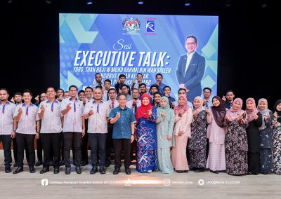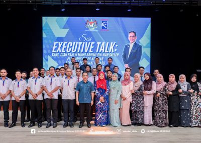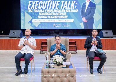 Sesi Executive Talk ini merupakan platform interaksi dua hala antara pengurusan tertinggi dan penjawat baharu, sekali gus memberi peluang kepada peserta memahami hala tuju organisasi serta peranan masing-masing dalam menyokong visi dan misi KESEDAR. Dalam ucapannya, Tuan Haji W Muhd Rahimi Wan Salleh menekankan bahawa setiap jawatan yang disandang adalah satu amanah yang perlu dilaksanakan dengan penuh rasa tanggungjawab, kejujuran dan integriti.