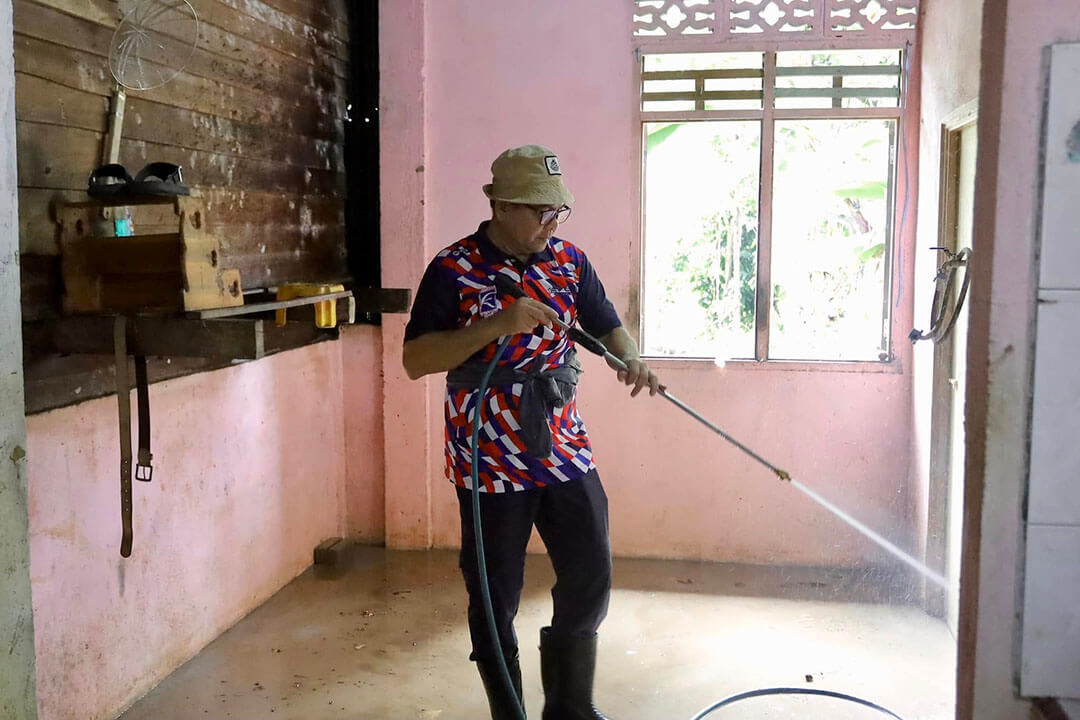 Selain rumah-rumah kakitangan yang terjejas, kerja-kerja pembersihan turut dilaksanakan di rumah-rumah penduduk di kawasan selian Jeli dan Tanah Merah.