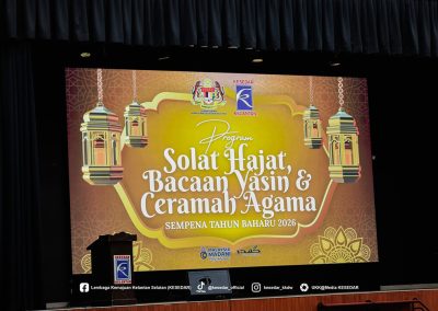 GUA MUSANG, 4 Januari 2026 — Program Bacaan Yasin, Solat Hajat dan Ceramah Agama Sempena Tahun Baharu 2026 telah berlangsung dengan penuh khusyuk dan penghayatan di Ibu Pejabat Lembaga Kemajuan Kelantan Selatan (KESEDAR). Penganjuran program ini bertujuan untuk memulakan tahun baharu dengan pengisian kerohanian, di samping memohon keberkatan, kesejahteraan serta kekuatan rohani dalam melaksanakan amanah dan tanggungjawab sepanjang tahun 2026.