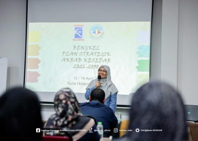 Selain itu, bengkel pelan strategik turut dilaksanakan secara berkumpulan bagi merangka hala tuju, objektif serta pelan tindakan AKRAB KESEDAR untuk tempoh lima tahun akan datang. Pendekatan pembelajaran berasaskan pengalaman yang digunakan berjaya meningkatkan penglibatan aktif peserta sepanjang program.