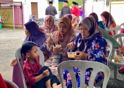 Selain menjamu selera, majlis ini turut menjadi ruang interaksi sosial yang bermakna apabila para hadirin berpeluang bertukar pandangan, berkongsi pengalaman serta mengeratkan hubungan kejiranan. Suasana ceria jelas terpancar apabila kanak-kanak, golongan dewasa dan warga emas bersama-sama memeriahkan sambutan dengan penuh kegembiraan.