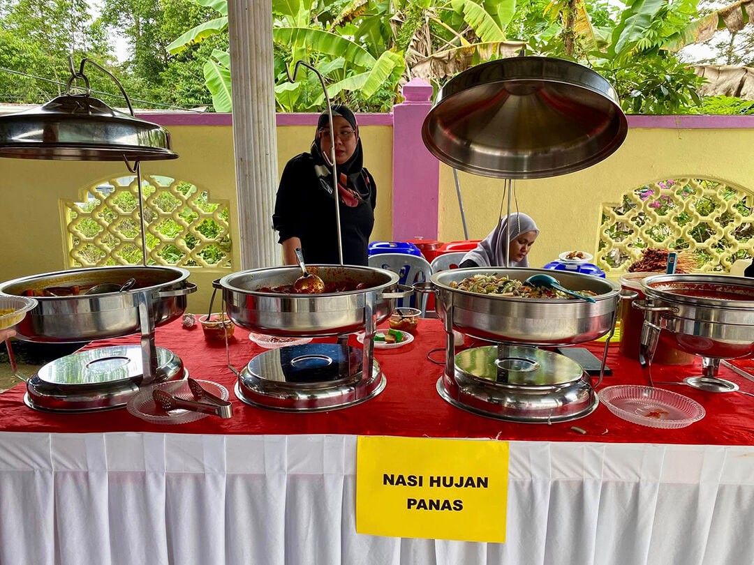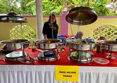 Bertepatan dengan tema Aidilfitri, pelbagai juadah tradisional telah disediakan bagi memeriahkan sambutan. Antara hidangan yang menjadi tarikan utama ialah ketupat, rendang, lemang, tapai, tepung pelita, rojak buah, laksa, serta nasi hujan panas yang disajikan kepada para tetamu. Kepelbagaian juadah ini bukan sahaja mencerminkan kekayaan budaya dan tradisi masyarakat Melayu, malah menambah kemesraan apabila para tetamu dapat menikmati hidangan bersama dalam suasana santai dan penuh kegembiraan.