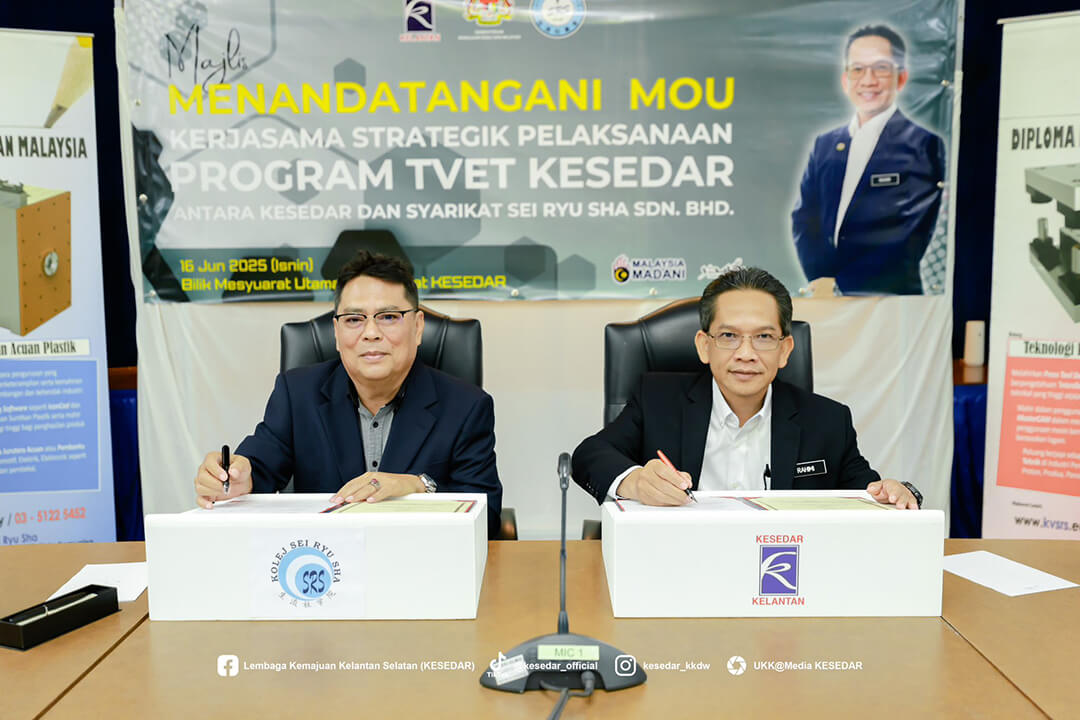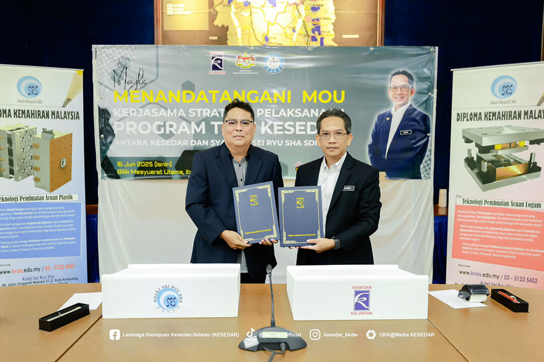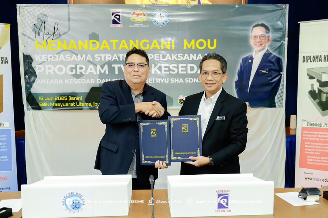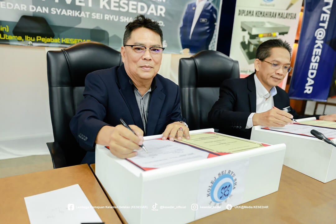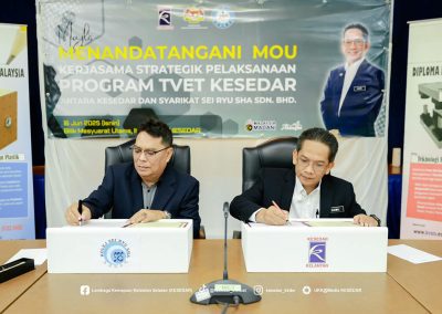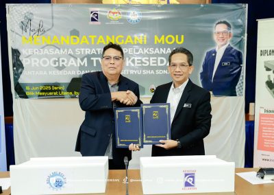 Majlis ini menyaksikan Ketua Operasi Kolej, Dr. Wan Yusoff Wan Ismail dan Pengurus Besar KESEDAR, Tuan Haji W. Muhd Rahimi bin W. Daud menandatangani MoU sebagai simbol komitmen bersama dalam memperkasa belia luar bandar melalui latihan kemahiran yang tersusun.