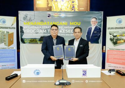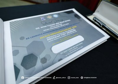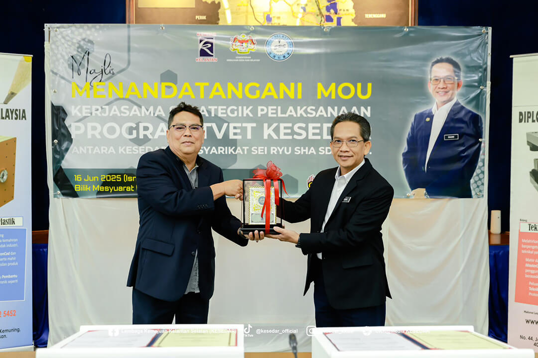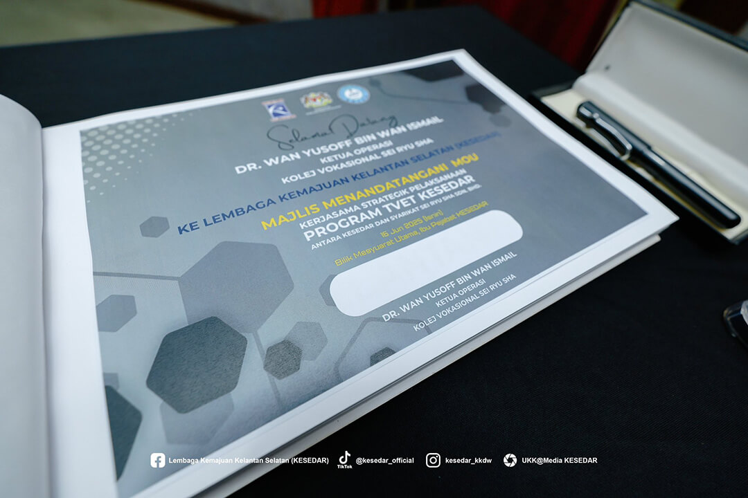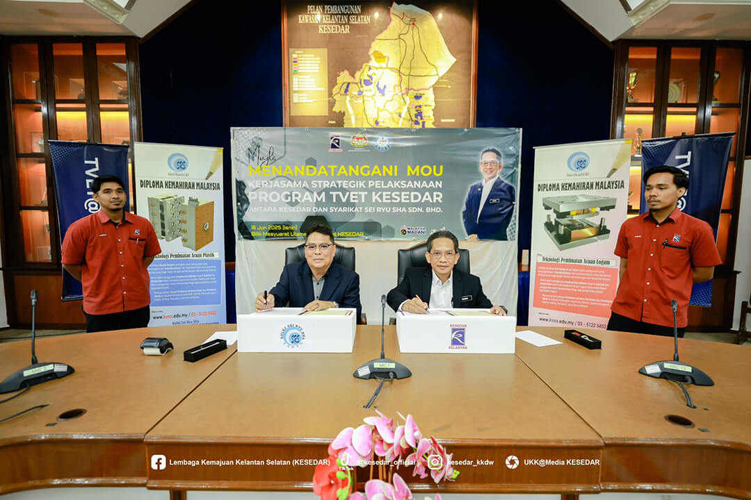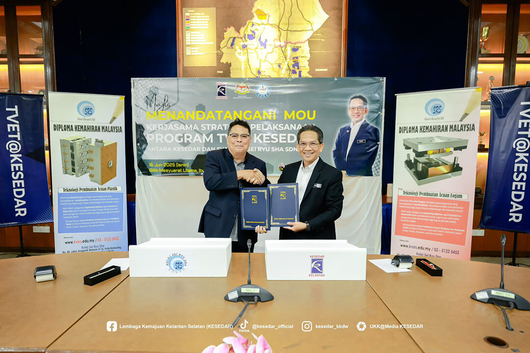 Majlis ini menyaksikan Ketua Operasi Kolej, Dr. Wan Yusoff Wan Ismail dan Pengurus Besar KESEDAR, Tuan Haji W. Muhd Rahimi bin W. Daud menandatangani MoU sebagai simbol komitmen bersama dalam memperkasa belia luar bandar melalui latihan kemahiran yang tersusun.
