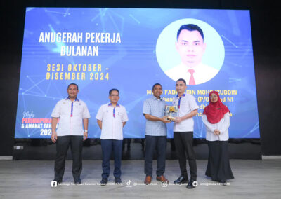 Dalam pada itu, majlis turut diserikan dengan Penyampaian Anugerah Pekerja Bulanan Sesi Oktober hingga Disember 2024.