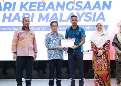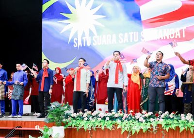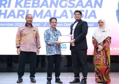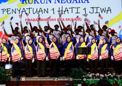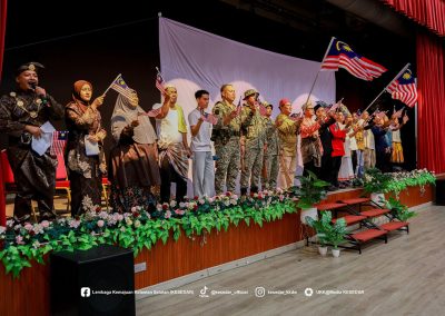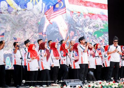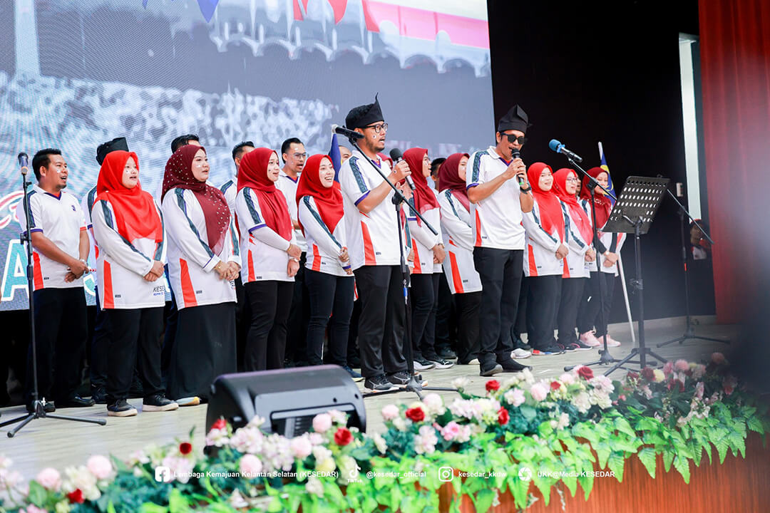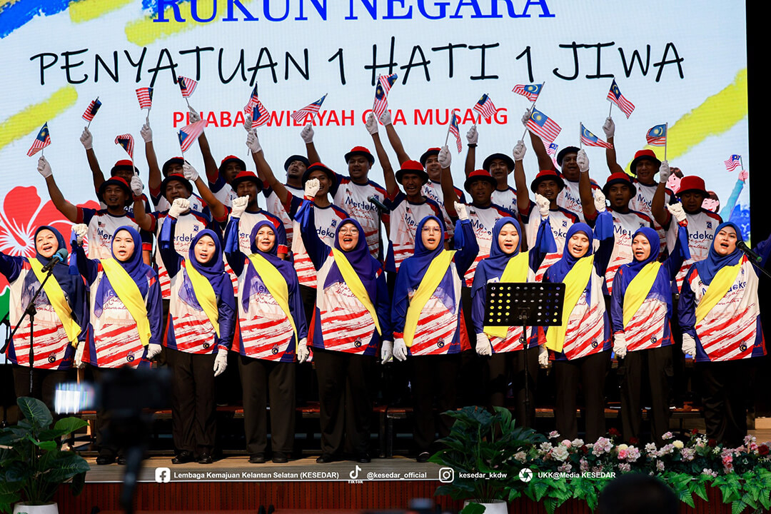 GUA MUSANG – Suasana penuh gilang-gemilang dan semangat cinta akan tanah air telah mewarnai Dewan Dato’ Ariffin Said, Ibu Pejabat KESEDAR, sempena penganjuran Pertandingan Sambutan Hari Kebangsaan dan Hari Malaysia bagi tahun 2025. Program yang penuh bermakna ini dianjurkan sebagai manifestasi rasa syukur dan bangga menjadi warga Malaysia, selain bertujuan menyemarakkan lagi api patriotisme dalam jiwa setiap peserta yang hadir. Melalui penganjuran ini, KESEDAR berharap agar nilai-nilai murni dan semangat kebersamaan dapat dipupuk dengan lebih erat dalam kalangan warga kerja serta masyarakat setempat.