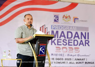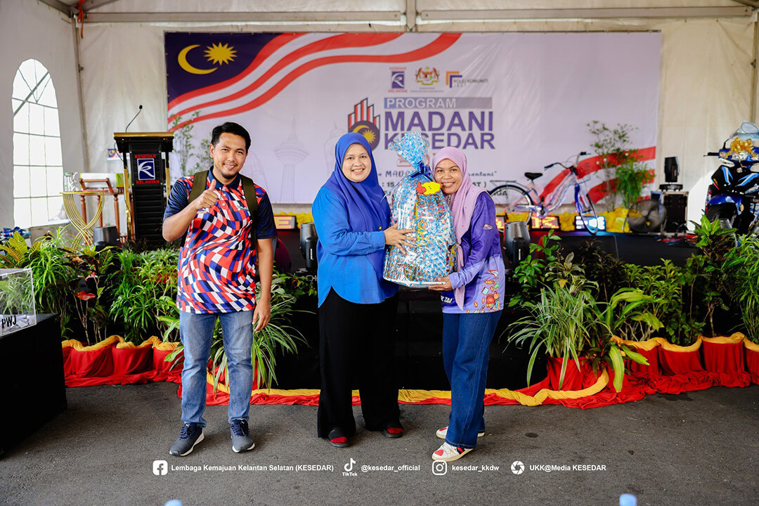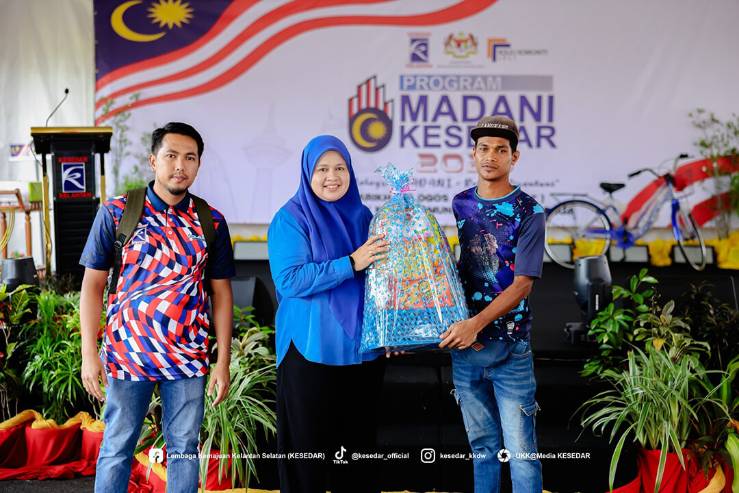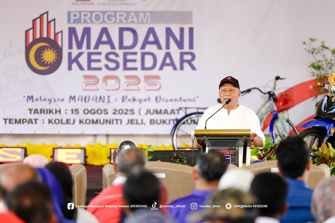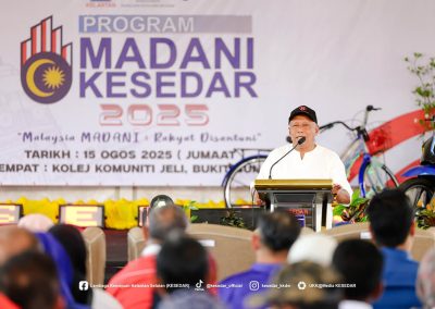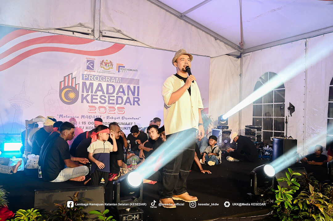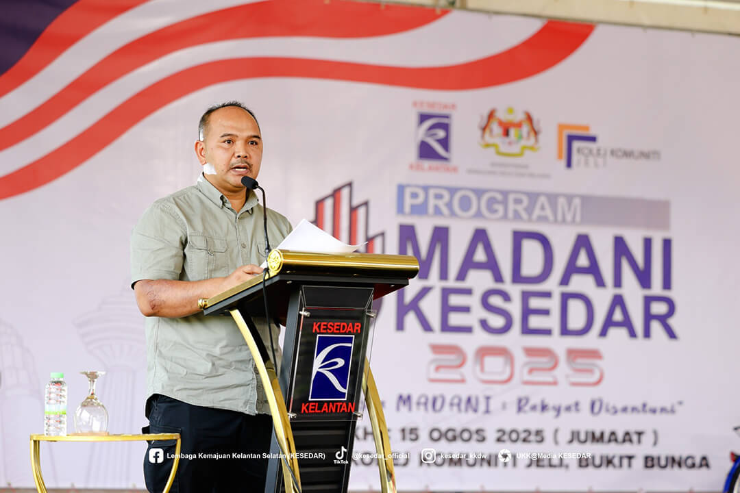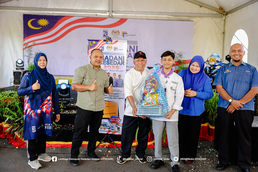 JELI, 15 Ogos 2025 – Lembaga Kemajuan Kelantan Selatan (KESEDAR) terus memperkukuh komitmen padunya dalam menyokong agenda nasional melalui penganjuran Program Madani KESEDAR peringkat Wilayah Jeli-Tanah Merah. Program yang berlangsung meriah di Kolej Komuniti Jeli ini merupakan manifestasi usaha agensi dalam membumikan konsep Malaysia MADANI agar lebih difahami dan dihayati oleh masyarakat di peringkat akar umbi.
